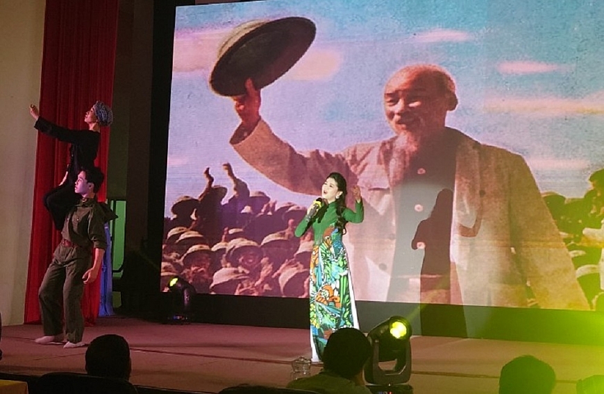 Khép lại chương trình, ca khúc “Vang vọng lời Bác Hồ” vang lên đầy hùng tráng, đưa cả khán phòng hòa chung trong niềm xúc động và tự hào.
