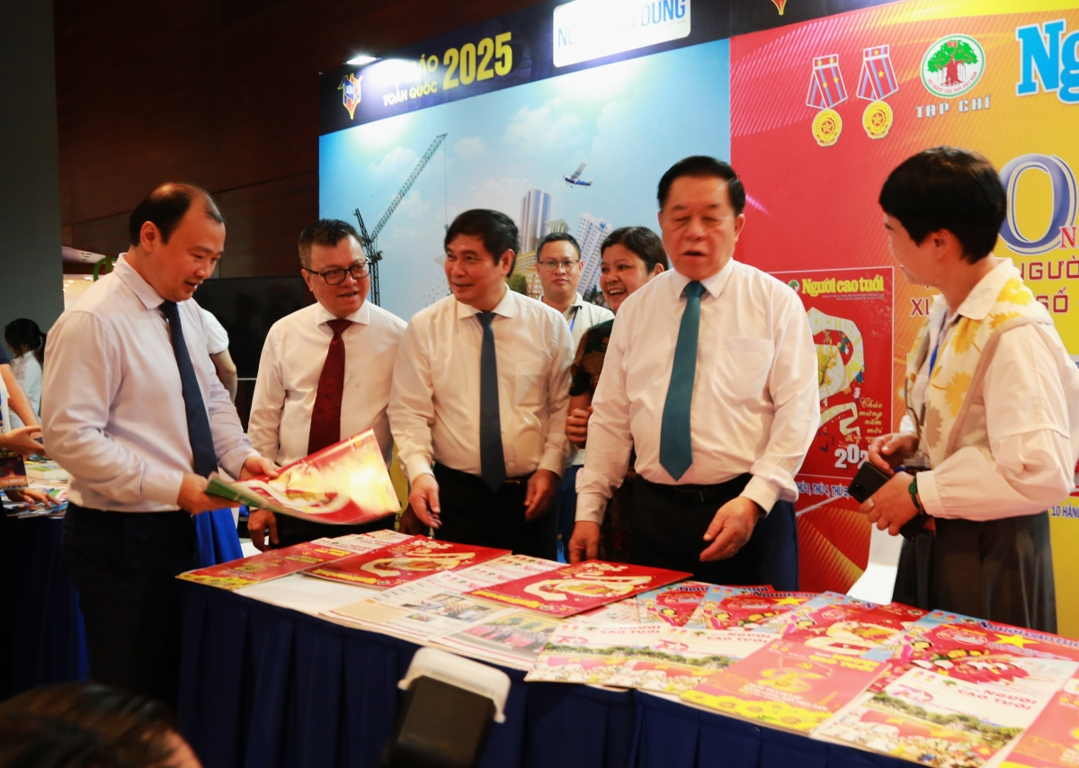 Đồng chí Nguyễn Trọng Nghĩa, Ủy viên Bộ Chính trị, Bí thư Trung ương Đảng, Trưởng Ban Tuyên giáo và Dân vận Trung ương cùng các lãnh đạo Đảng, Nhà nước thăm gian trưng bày của Tạp chí Người cao tuổi và các cơ quan báo chí tại Hội báo toàn quốc năm 2025. |