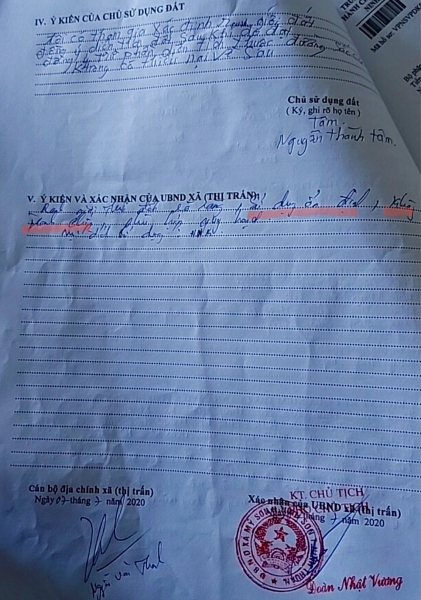 Trả lời các câu hỏi của nhà báo, anh Tú cho hay : Đất tôi đang ở do ông nội tôi- cụ Trần Trung Tá cho, tôi đã làm nhà và sinh sống tại đây. Tôi không biết gì về biên bản phân chia tài sản có chữ ký của các thành viên trên thửa đất này, tôi chưa có quyền thừa kế. Bà Mai đang lấn chiếm đất của gia đình tôi tại Tờ bản đồ số 7, thửa 10/364 diện tích 425 m2 đất nông nghiệp sổ đỏ mang tên Tạ Thị Vây (mẹ tôi) và tôi là Trần Văn Tú. Bà Mai lấy tiền đền bù diện tích này của gia đình tôi, mẹ tôi đã ủy quyền cho tôi để giải quyết tranh chấp này. Mặt khác cụ Hoàng Thị Ảng và bà Trần Thị Mai đang ở đất của gia đình tôi tại 428 (nay là 546 Nguyễn Văn Linh) đất đó của bố tôi. Vì thế tôi đang tranh chấp với bà Mai và không đồng ý để bà Mai kê khai sổ đỏ ở đất chia thừa kế. Tôi không biết ai liền kề với đất nhà tôi, chưa ai cho mẹ tôi, nguồn gốc đất vẫn của cụ Tá. Ông tôi nhiều con rơi con vãi tôi không biết ai là con.Tôi lấn chiếm đất công chính quyền đã thu hồi, tôi không biết bao nhiêu m2.